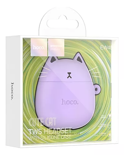 Audifonos Hoco EW45 In Ear Bluetooth TWS Lilac Cat con chip Bluetooth 5,3 que reduce la latencia de datos, mejora las interferencias, optimiza la duración de la batería y la seguridad. Sincronización automática con dispositivos Android y iOS iPad iPhone iPod Touch reloj de Apple Mac. Características del chip Bluetooth 5,3. Capacidad de la batería: Estuche de carga de 350 mAh; Auriculares de 35 mAh. Tiempo de uso: 4 horas. Tiempo en espera: 200 horas. Tamaño: 53,8×44,3×21,5mm. Peso: 43G. En iPhone, la configuración de funciones y el posicionamiento no son compatibles. No admite detección en el oído; No admite carga inalámbrica.