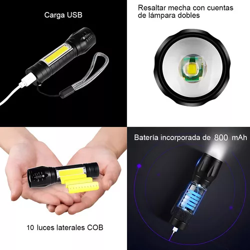 Nuestra linterna está hecha de aleación de aluminio de alta calidad, con un rendimiento estable y una larga vida útil. 3 tipos de modos de luz LED: botón interruptor de encendido / apagado, luz alta del faro XPE, luz estroboscópica del faro XPE, luz de prueba COB encendida. Utilice la interfaz USB para cargar en cualquier momento, conveniente y práctico. Es de tamaño pequeño, liviano y está equipado con una cuerda, que es conveniente para llevar a donde quiera.
